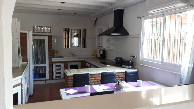La cuisine est équipée de l'air conditionné. Réfrigérateur congélateur américain, lave-vaisselle, lave-linge, plaque vitro-céramique, four, bouilloire, cafetière, grille-pain et tout le nécessaire pour cuisiner.